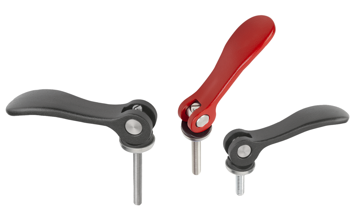 Adjustable cam levers are used if the position of the lever relative to the axis of tension only permits one specific position (interference circle). The exact position of the lever is adjusted using a screwdriver on the fine thread setscrew.
