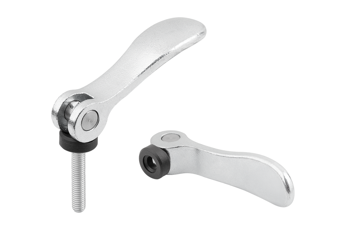 Cam levers, steel with external thread, plastic thrust washer and steel stud