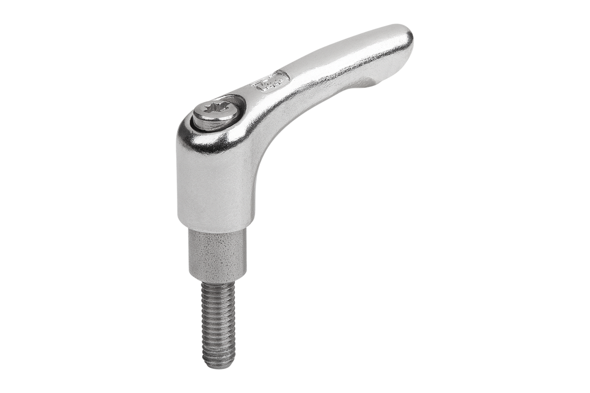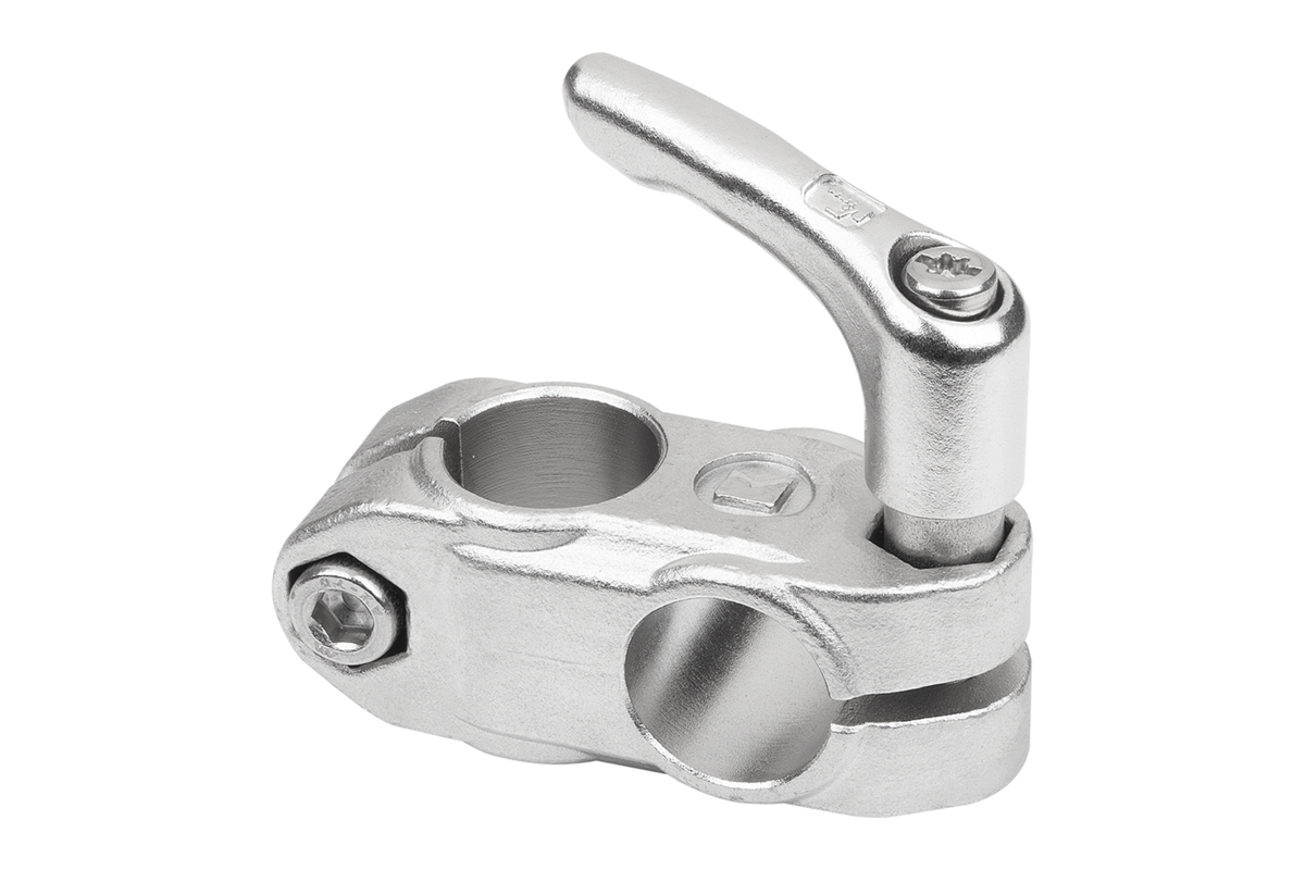 The clamping lever with extended collar replaces the screw on e.g. tube clamps. This enables tool-free tightening and loosening of the screw connection.