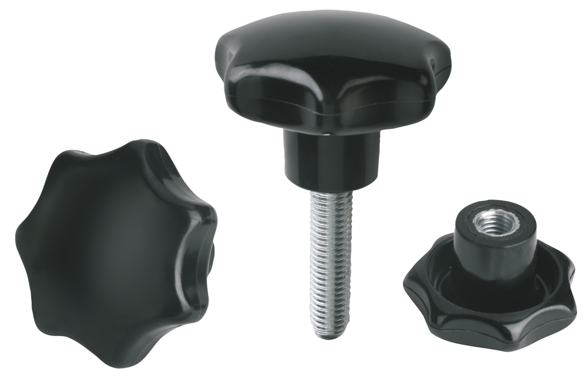 Star grips similar to DIN 6336, metal parts stainless steel Form L with external thread