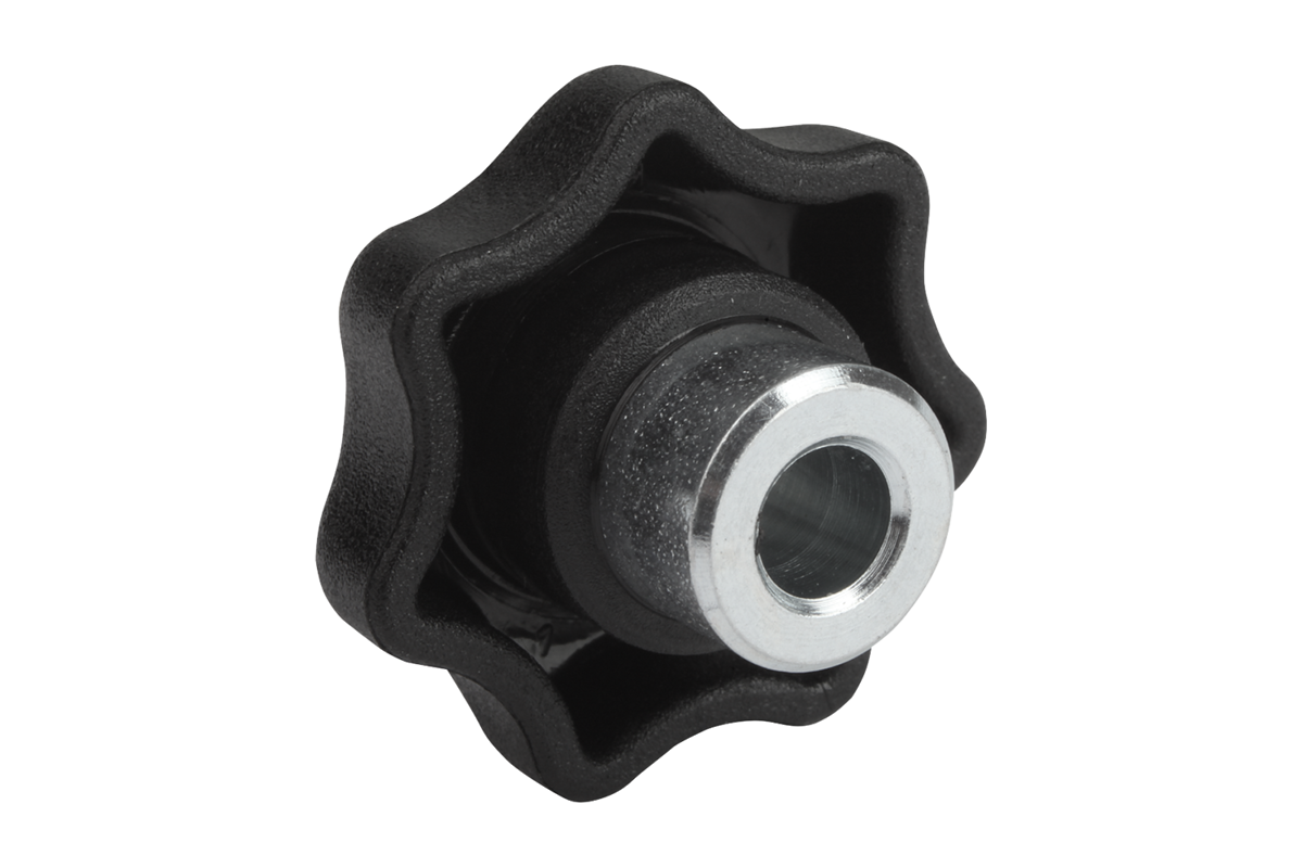 Star grips with projecting steel bush and blind hole or internal thread are especially suited for cross pinning.
