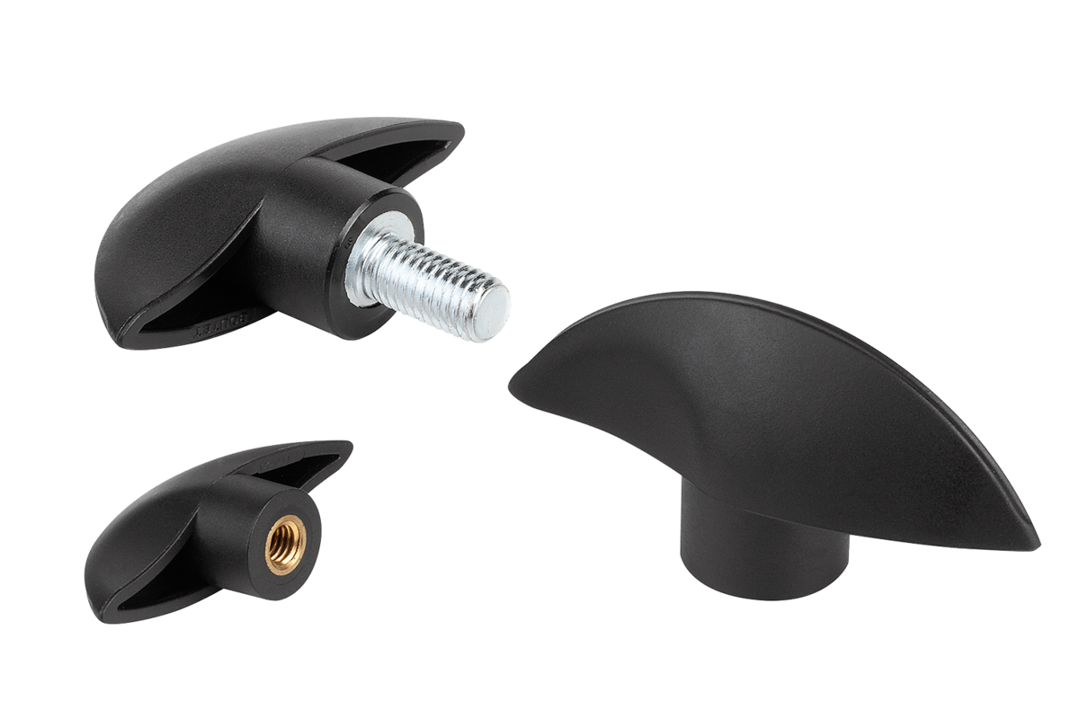 Wing grips, plastic, threaded insert brass or steel, with external thread