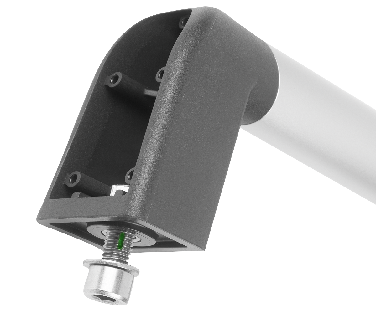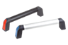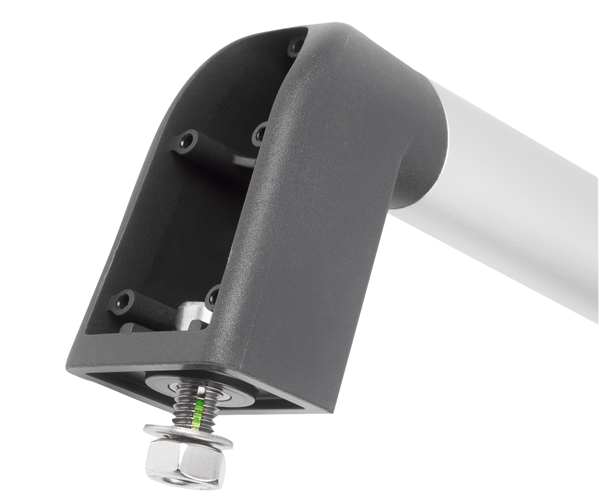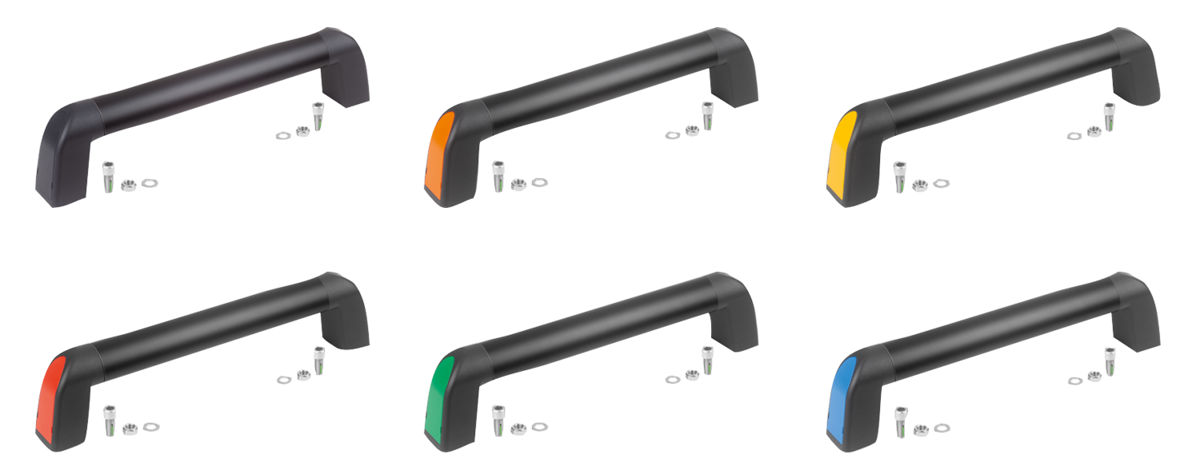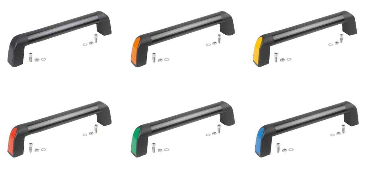 The end pieces are designed so that the tubular handle can be fastened either from the front or rear. DIN M8 cap screws or hex head screws are provided for this purpose. After mounting, the end caps can be pressed in by hand. Slots are provided on both sides of the end caps so that they can be removed with a screwdriver without damaging them.