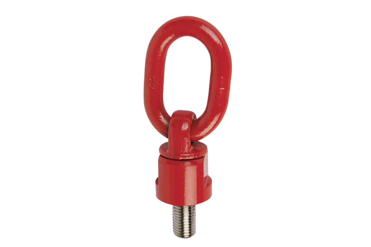 Compact and light design, full loading on all sides. 4x safety factor against breakage in all loading axis. Rotatable 360°. Link swivel range max. 180°. The ball bearing allows the ring to rotate even under load.