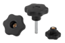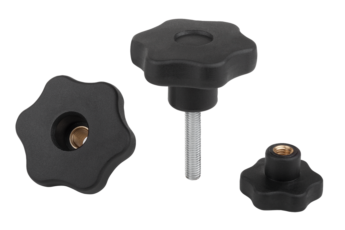 Bouton étoile, forme D, avec insert taraudé, sans pastille