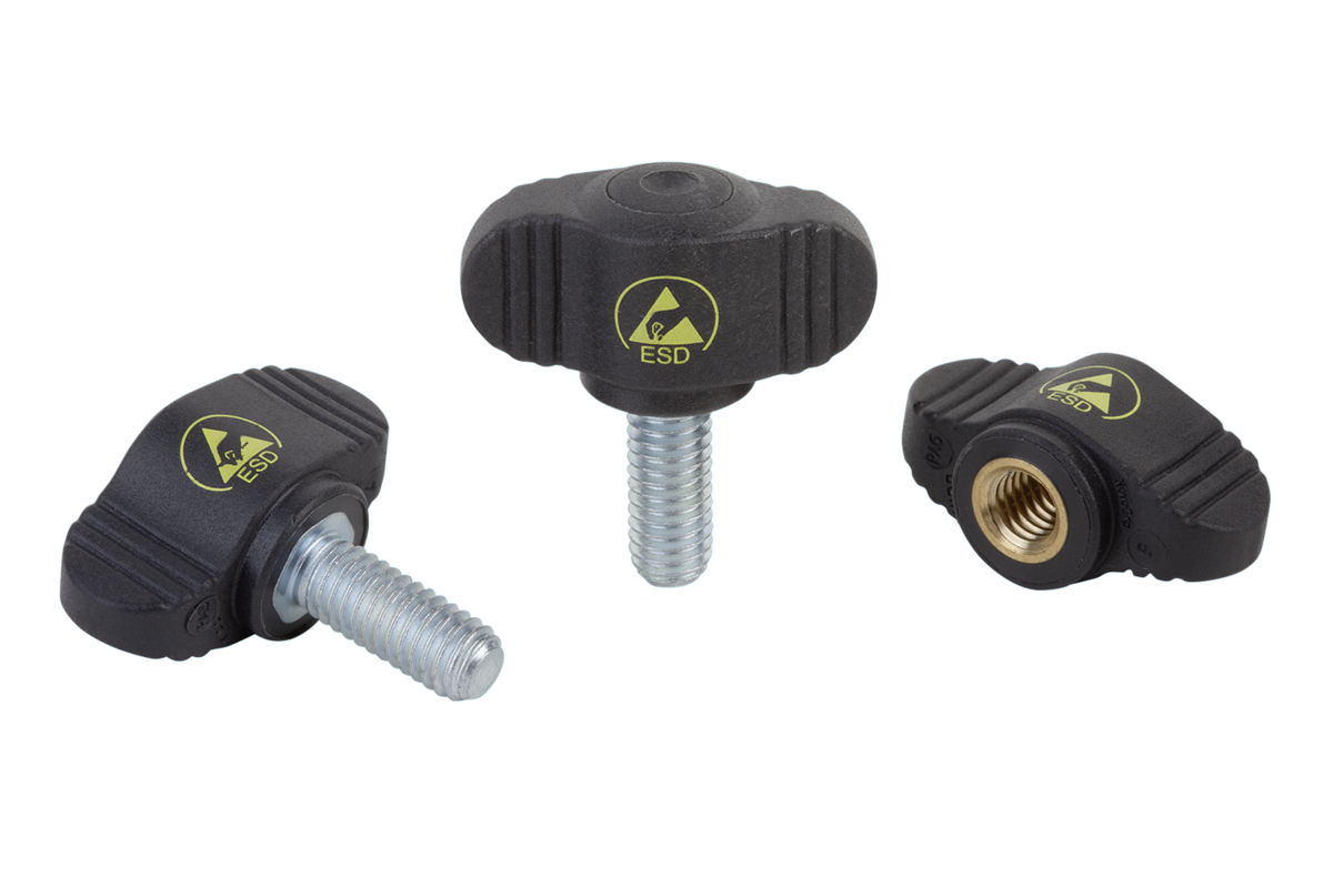 Poignée papillon antistatique « Miniwing » avec filetage