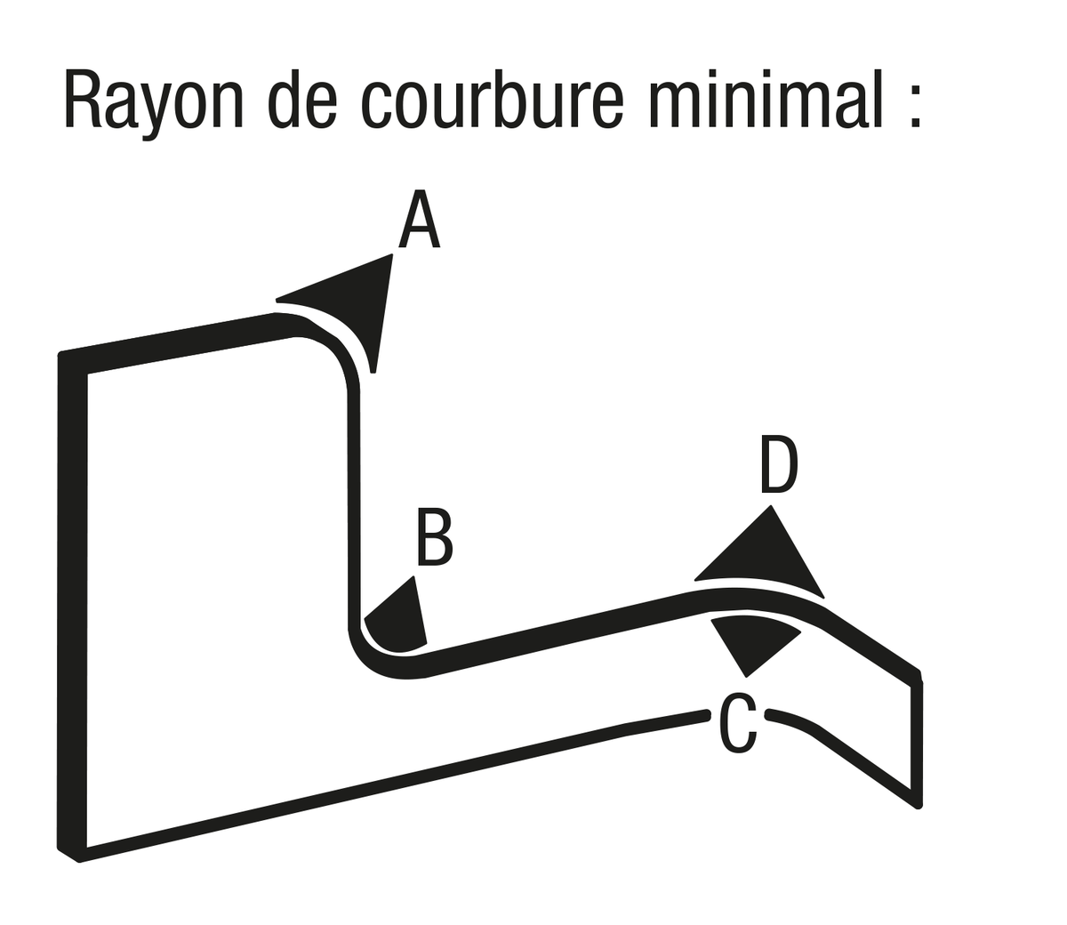 Montage simple, rapide et sans difficulté. En appuyant avec la main, le profilé de protection des arêtes se bloque automatiquement, même en présence de rayons ou de courbes. L'opération ne nécessite aucun élément adhésif ou de fixation.
