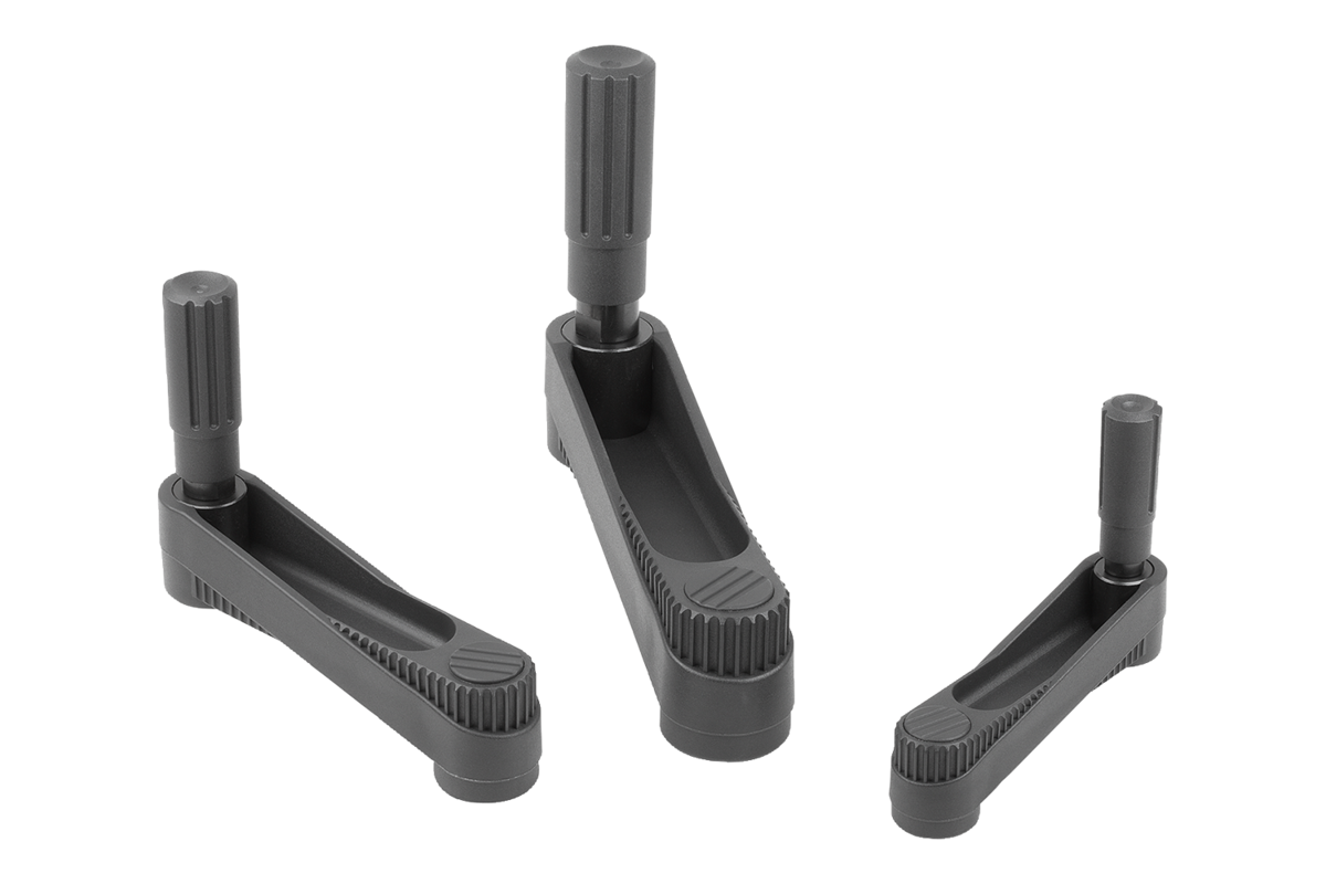 Les manivelles se fixent suivant le sens axial sur l’arbre soit à l’aide d'une goupille transversale, soit à l'aide d'une vis CHC DIN 6912 et d'une rondelle DIN 7349.