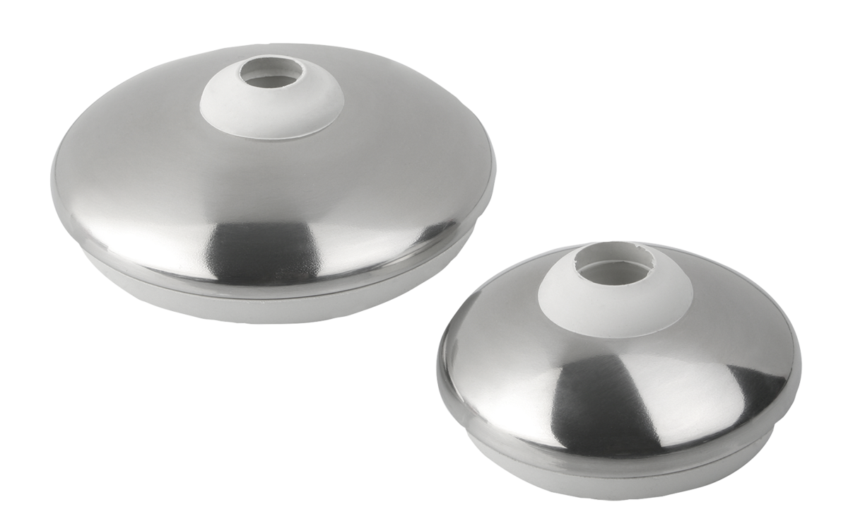 Inox : poli. Support en caoutchouc gris clair avec joint : dureté, 70° Shore A. Résiste à des températures de -20 °C à +100 °C.