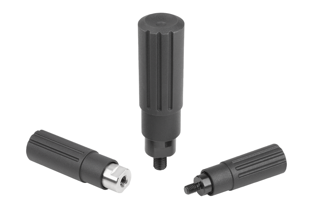 Poignées cylindriques en plastique tournantes avec filetage