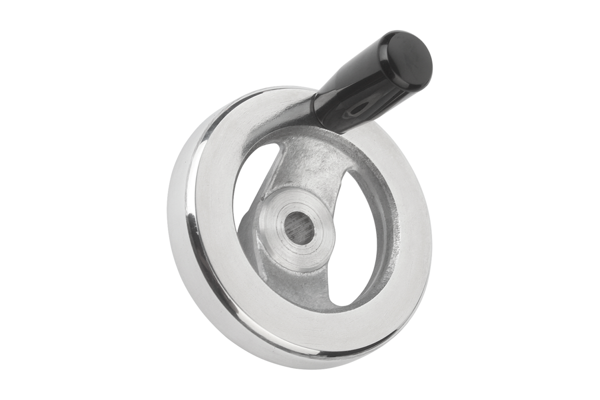 Spaakhandwiel aluminium. Cilindergreep duroplast PF 31-DIN 7708, zwart, asdeel staal verzinkt.