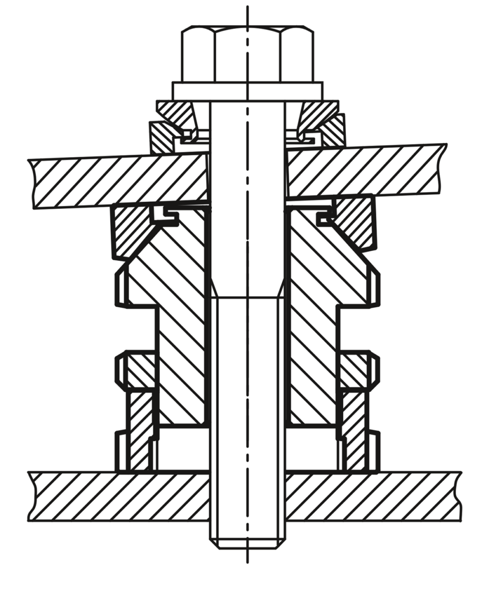 Het hoogtestelelement met kogelcompensatiering en contramoer wordt toegepast, waar het gaat om het opstellen en uitlijnen van motoren, aggregaten, aandrijfelementen en fabricagelijnen. Met deze is exact aanliggen mogelijk bij de montage van schuine steunvlakken tot een hellingshoek van circa 4°. Daarbij is de contramoer bedoeld voor de borging van een gegeven instelling.