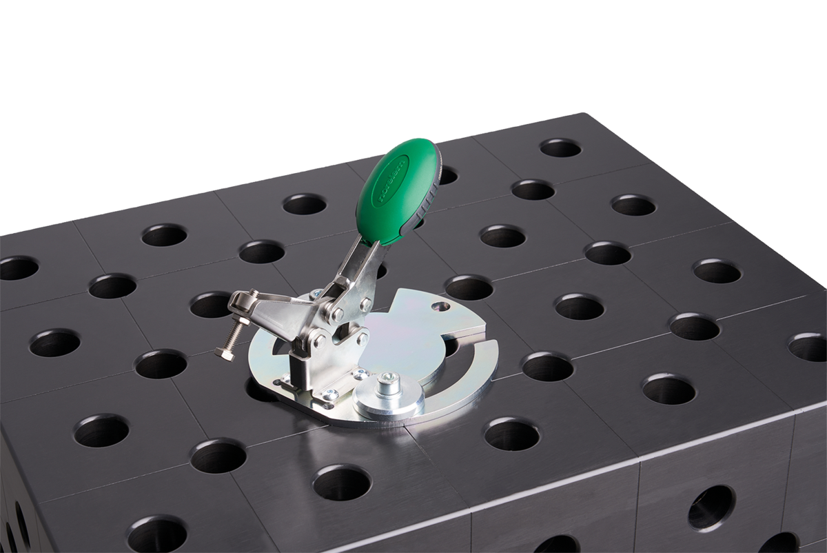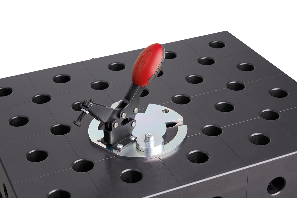 Adapterplaten kunnen in combinatie met snelspanners worden toegepast. Ze maken het flexibel positioneren van de daarop bevestigde snelspanners mogelijk.