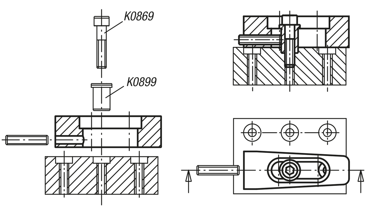 Basislichaam staal, spanbekken inzetstaal, centreerbus met kraag gehard staal.