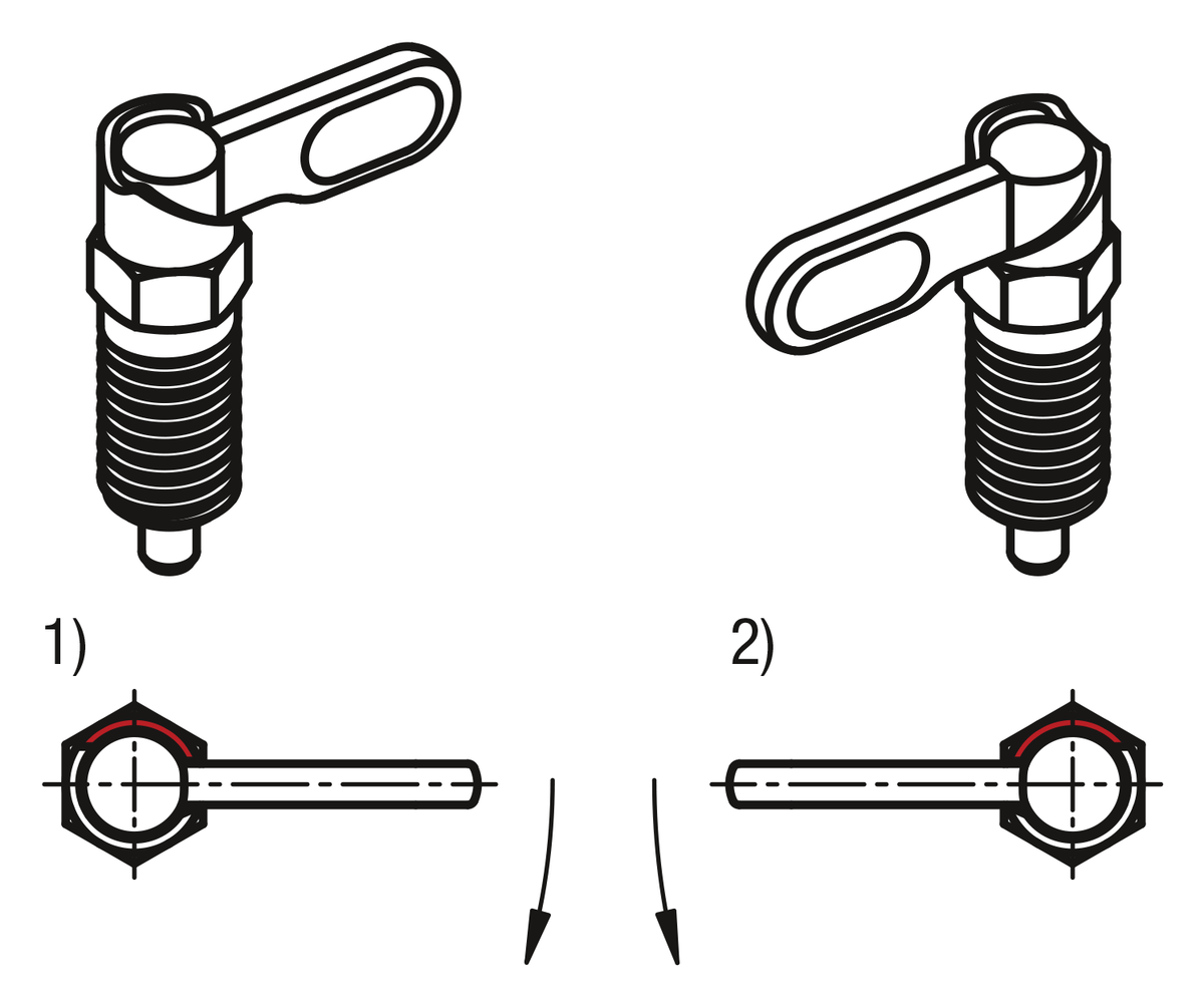 Vergrendelingen worden toegepast als de arreteerstift tijdelijk niet mag uitsteken. Door de vergrendeling 180° te draaien, wordt de arreteerstift naar binnen getrokken.