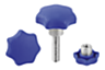 Stergrepen kunststof visueel detecteerbaar met vooruitstekende stalen bus, vorm L, met buitendraad