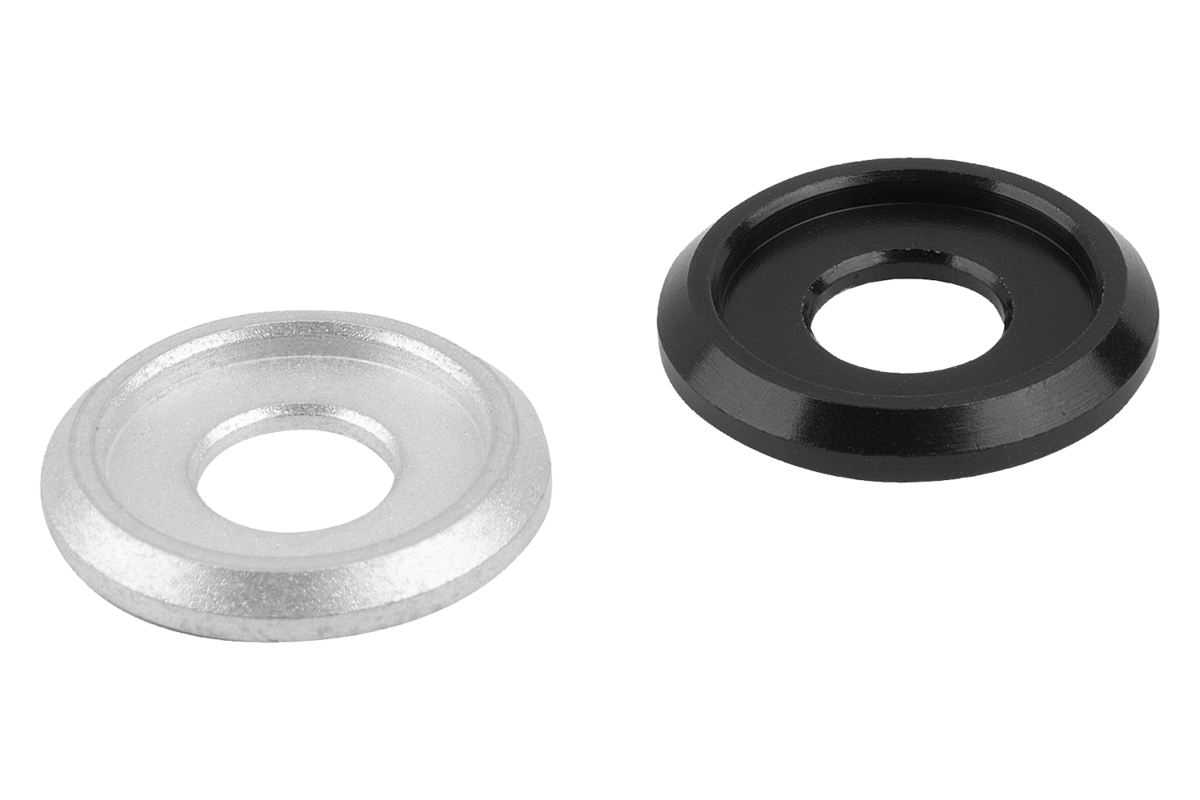 De sluitringen zijn voorzien voor beugelgrepen rond. Door de sluitring wordt het schroefvlak vergroot, waardoor de doorbraak bij dunne platen wordt geminimaliseerd.