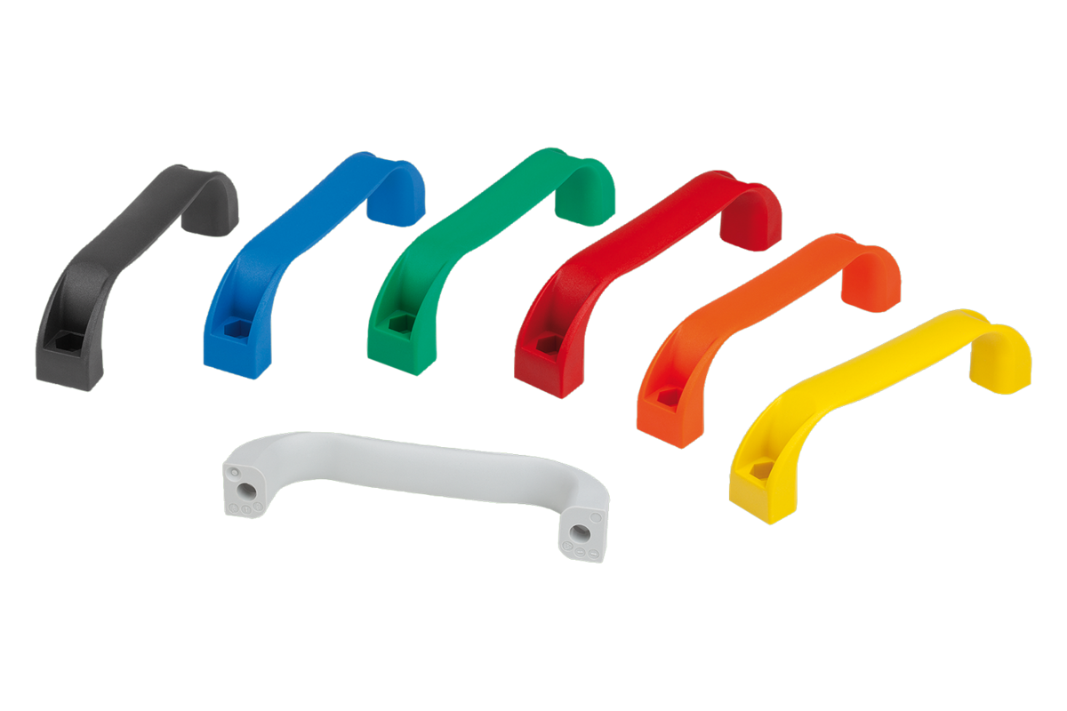 Polyamide zwartgrijs RAL 7021, zuiver oranje RAL 2004, koolzaadgeel RAL 1021, signaalgroen RAL 6032, verkeersblauw RAL 5017, verkeersrood RAL 3020 en lichtgrijs RAL 7035.