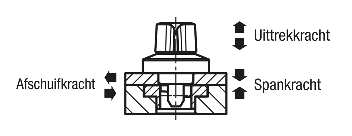 Bij overschrijding van de klemkracht ontstaat er een spleet van meer dan 0,1 mm tussen de platen.