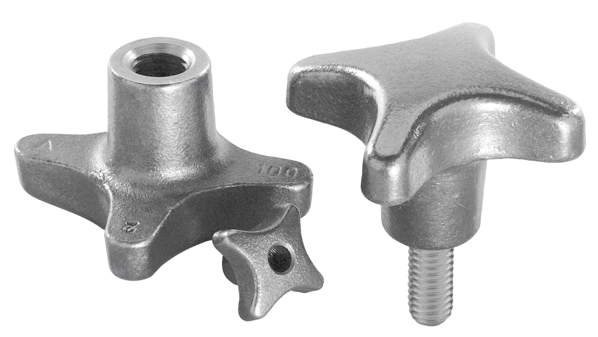 Kruisgrepen DIN 6335 uit gietijzer, vorm E, blind schroefgat