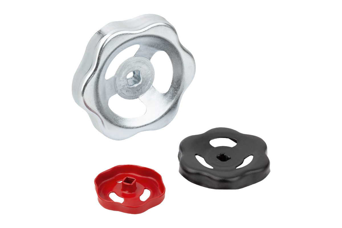 Bijzonder geschikt voor afsluiters. De handwielen zijn uit een stuk vervaardigd. Door een speciale vervormingsmethode is het handwiel bij de naaf versterkt. De conisch gevormde naaf maakt een eenvoudige montage mogelijk en zorgt voor een veilige en vaste verbinding met het vierkant.