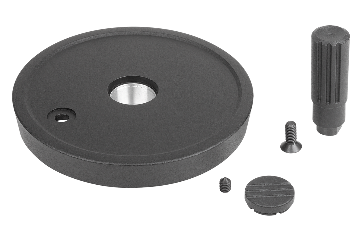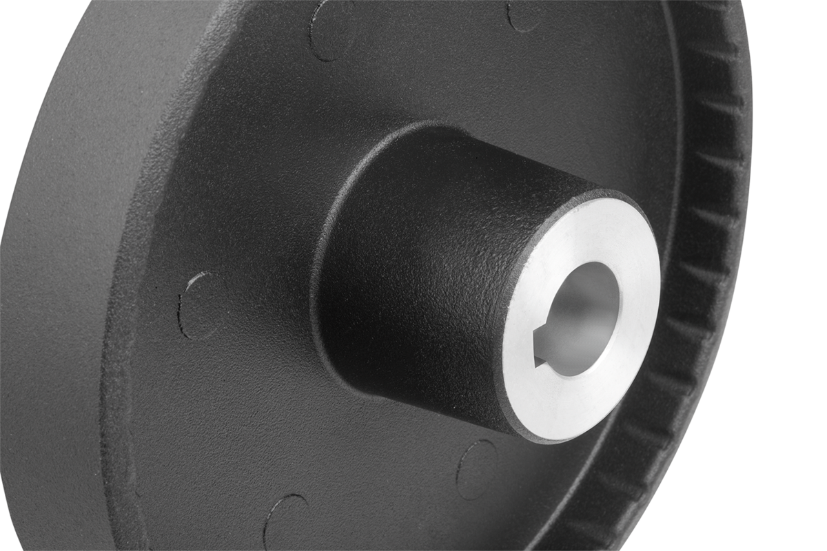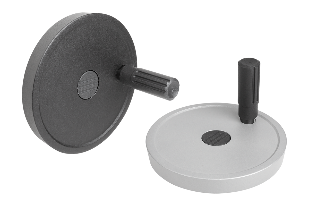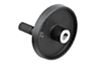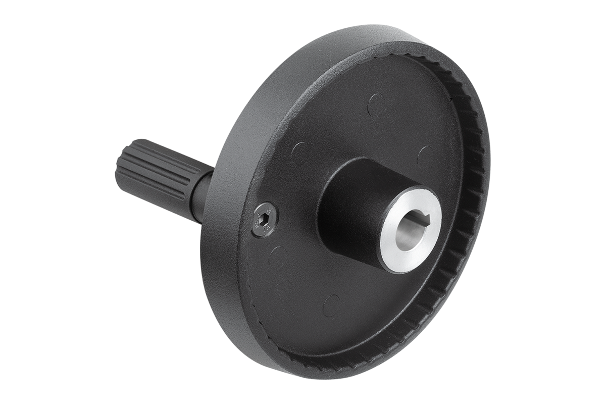 De handwielen kunnen door dwarsverpenning of door een cilinderkopschroef DIN 6912 en een afdekschijf K0173 axiaal door een spieverbinding op de as worden bevestigd.