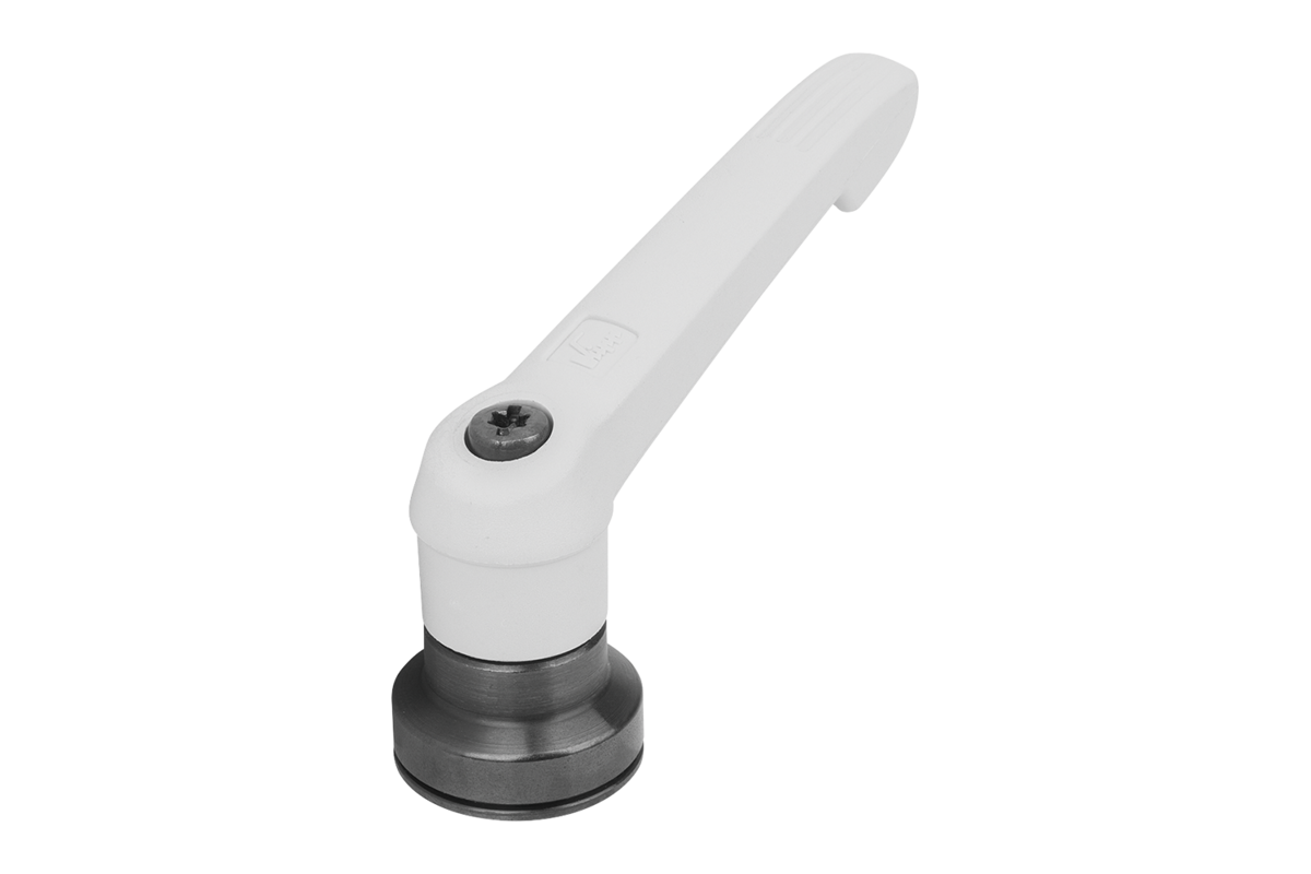 Handgreep uit glasvezelversterkte kunststof met tandring uit zinkspuitgietwerk.