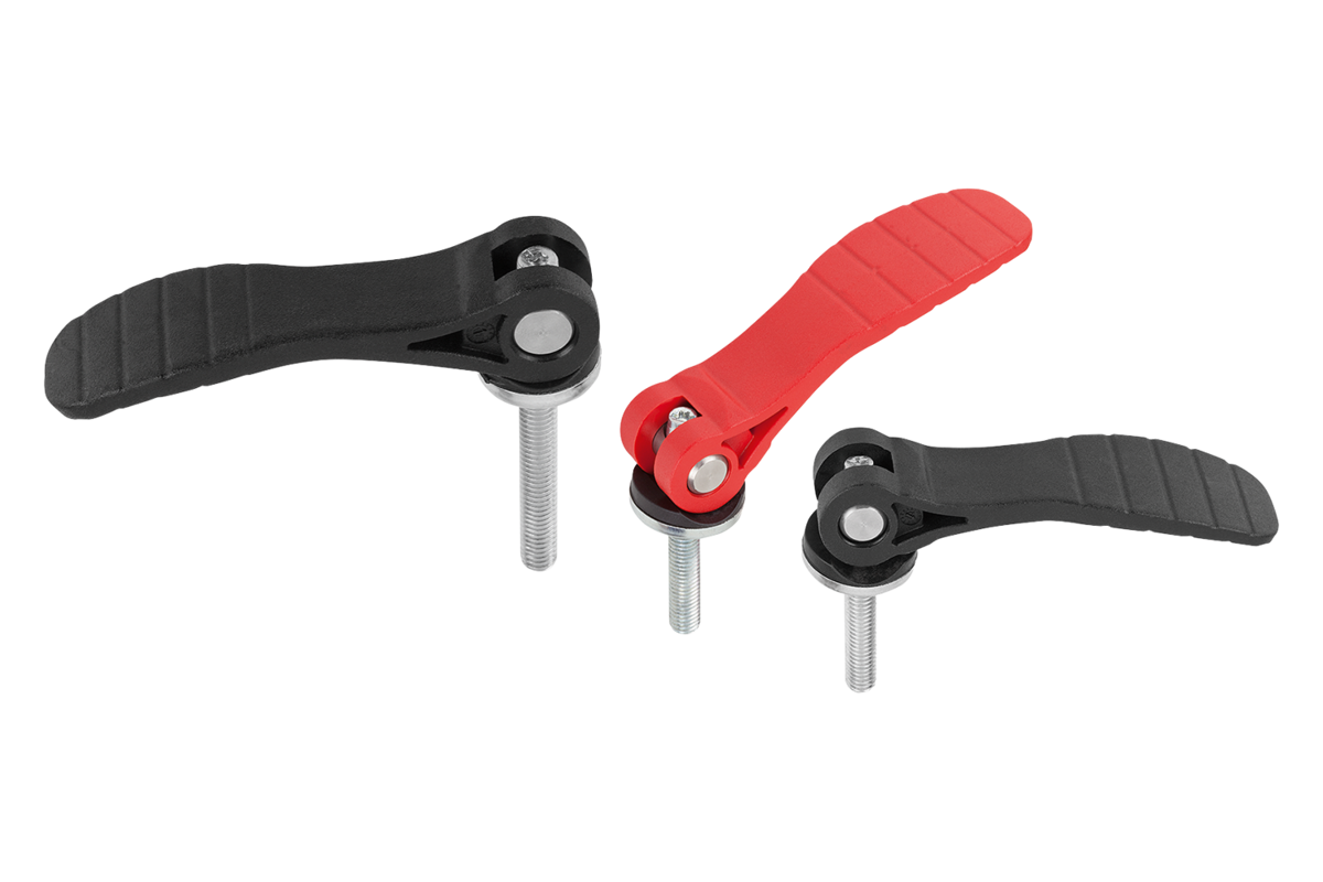 Instelbare excenterhefbomen worden ingezet als de stand van de spanhefboom t.o.v. de spanas slechts een bepaalde positie toelaat (storingsgebied). Via de fijne schroefdraad van het draadeind wordt de precieze positie van de spanhefboom ingesteld met een schroevendraaier.