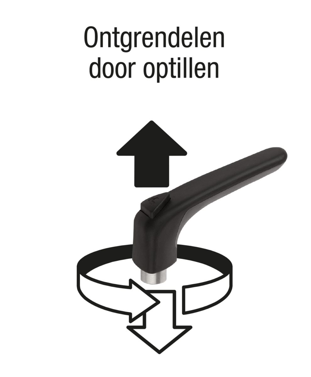 Door de ontgrendelknop wordt het lossen gemakkelijker gemaakt en is zo het omzetten van de greep gemakkelijk.