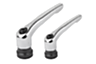 De handgreep is met behulp van een tandkrans in onbediende toestand in het vertandingsinzetstuk vastgezet. Door het optillen van de handgreep kan deze in de positie worden omgezet en met behulp van de veerkracht weer in de tandkrans worden vastgezet.