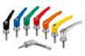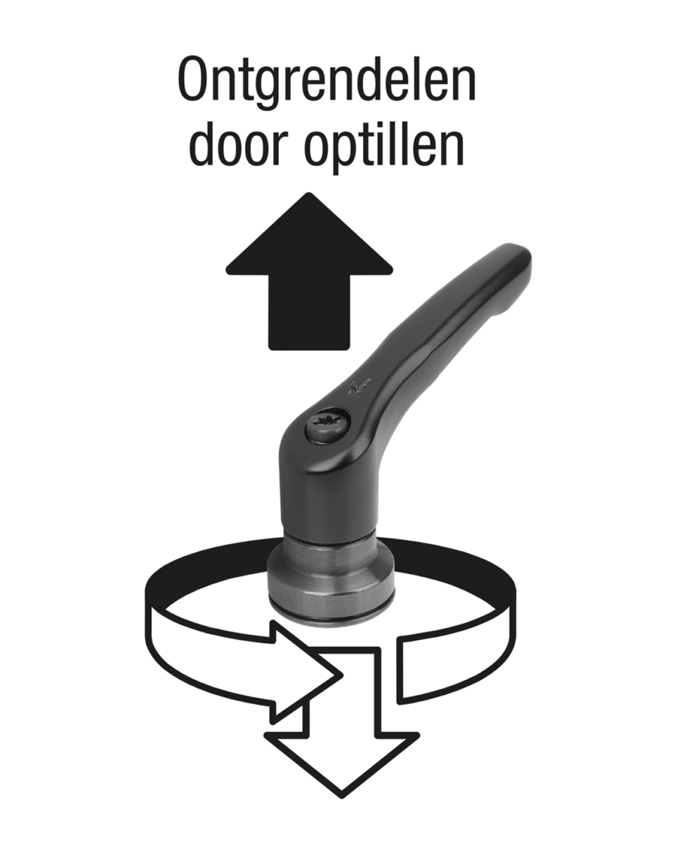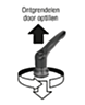 De handgreep is met behulp van een tandkrans in onbediende toestand in het vertandingsinzetstuk vastgezet. Door het optillen van de handgreep kan deze in de positie worden omgezet en met behulp van de veerkracht weer in de tandkrans worden vastgezet.