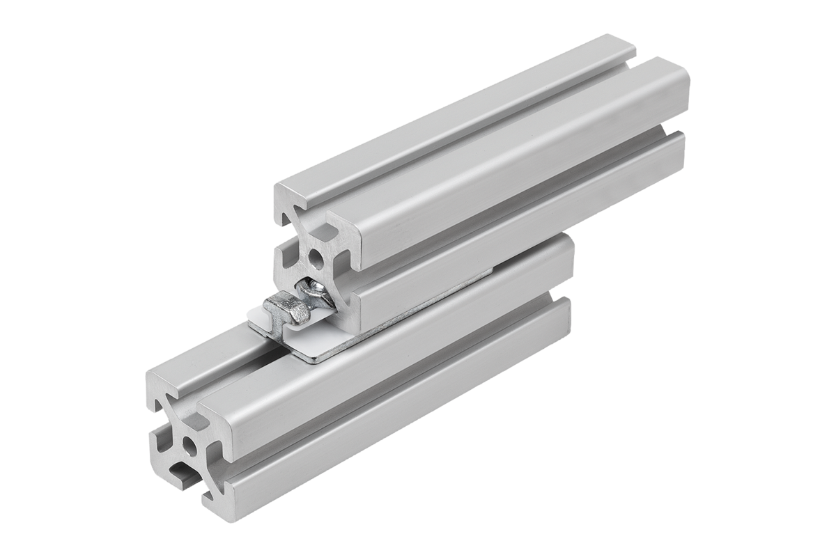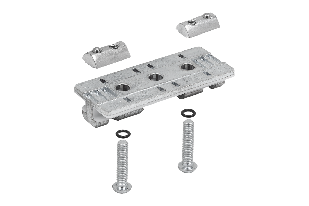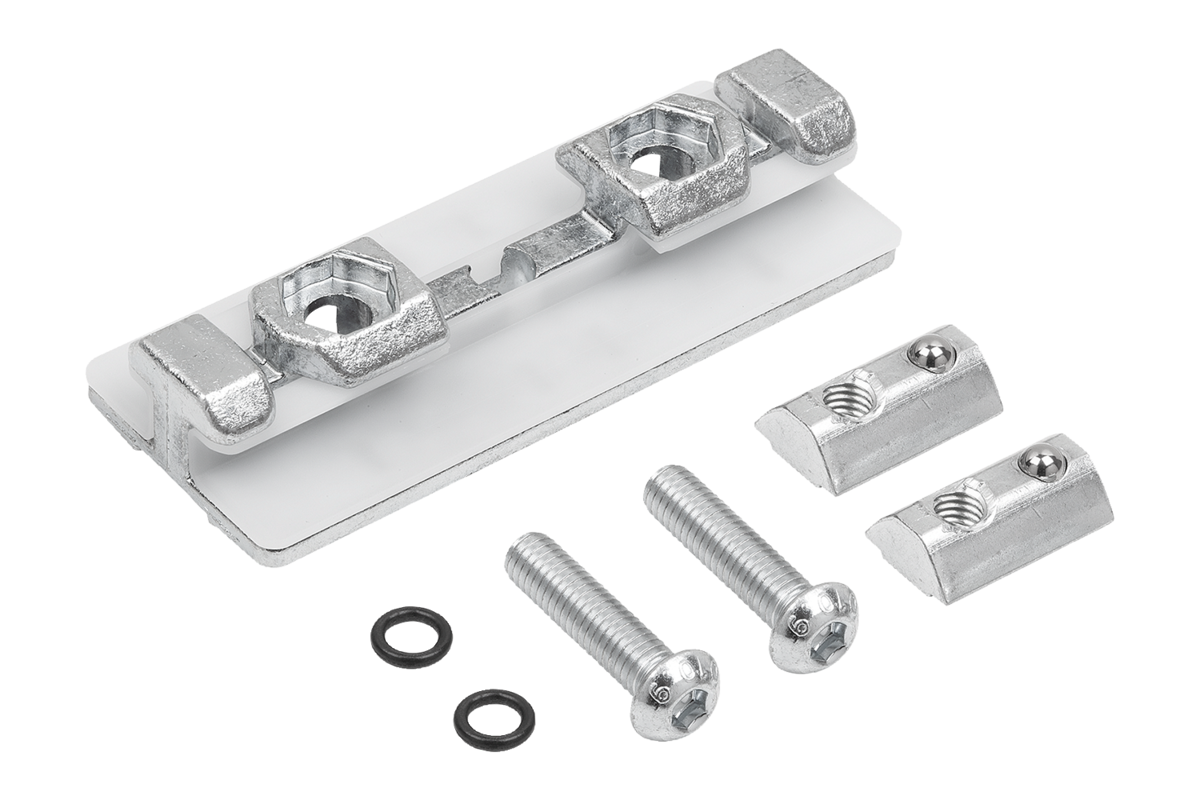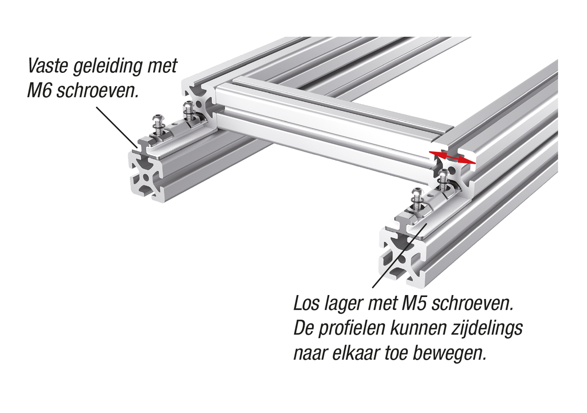 Profielrail van metaal met ingeklikte glijelementen van kunststof. De profielrails maken een slijtarme lineaire beweging van aluminium profielen type I met gleuf 8 mm mogelijk. Door geen smering te gebruiken, is het systeem uitermate vuilafstotend.