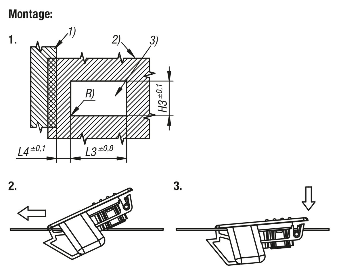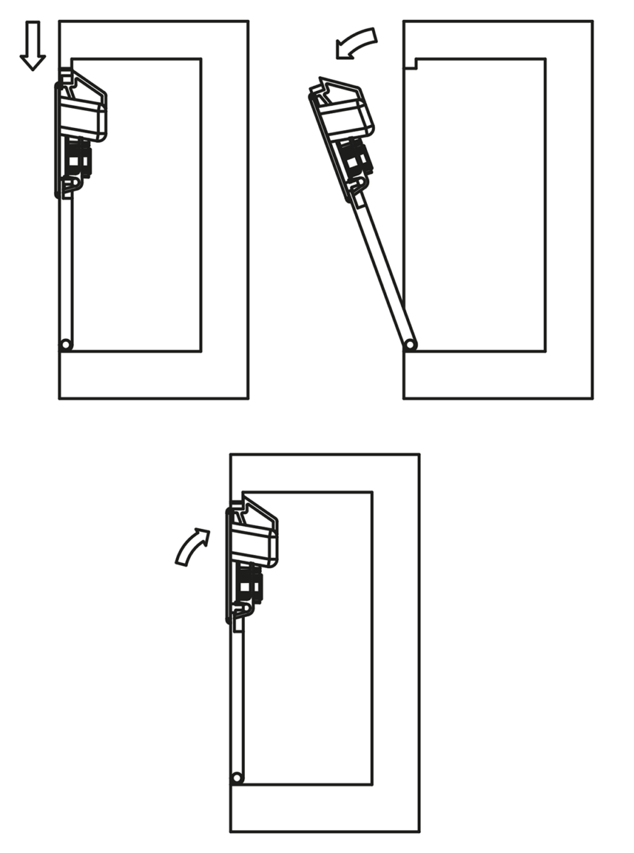 2. De sluiting met de voorkant in de uitsparing schuiven en naar voren drukken.