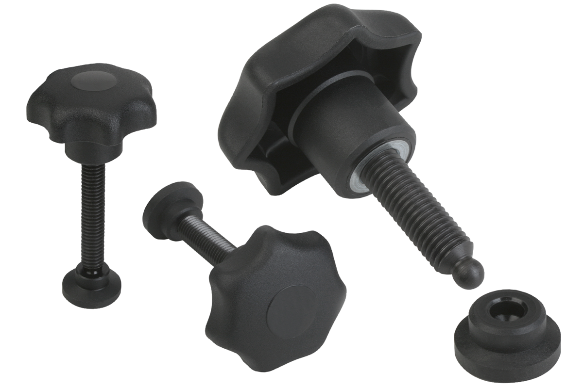 Stergreep, drukstuk zwart. Bus verzinkt en blauw gepassiveerd.