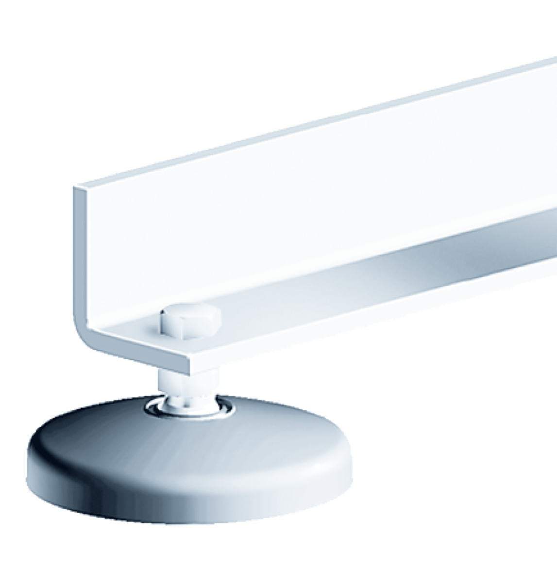 Voor de directe montage van scharniervoeten met standaard schroeven. Scharniervoeten worden samengesteld uit een kogelkop en een voetplaat. Elke kogelkop kan met elke voetplaat worden gecombineerd. De hoogte van de volledige scharniervoet is gelijk aan de hoogte van de zeskant + 22,5 mm. (totale hoogte scharniervoet = L1 + 22,5 mm)
