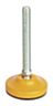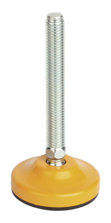 Hoogbelastbare scharniervoeten van staal met geel gelakte voet, als optioneel met antislipplaat. De antislip-plaat absorbeert trillingen en verhindert het verschuiven van de scharniervoet.