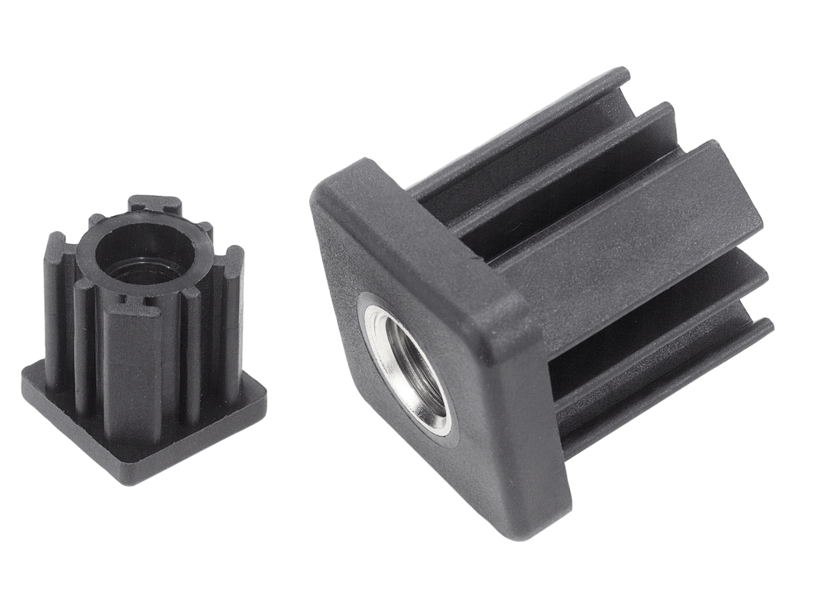 Inslagdoppen worden gebruikt voor een eenvoudige bevestiging van stel- en scharniervoeten aan vierkante buizen.