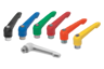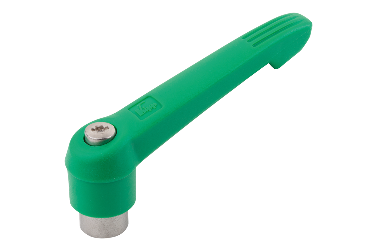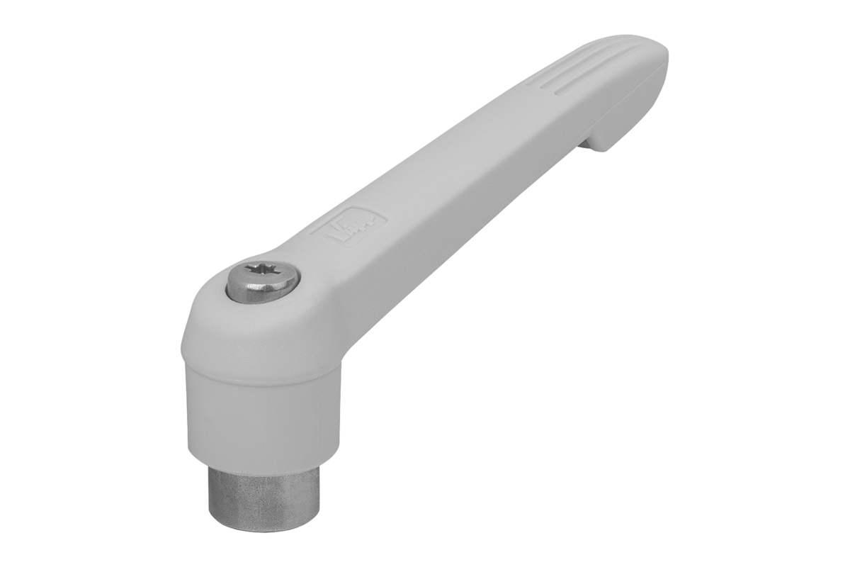 Handgreep uit glasvezelversterkte kunststof met tandring uit zinkspuitgietwerk.