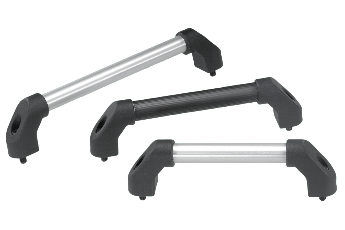Armen thermoplast glaskogelversterkt, zwart. Verbindingsbuis aluminium EN AW-6060.